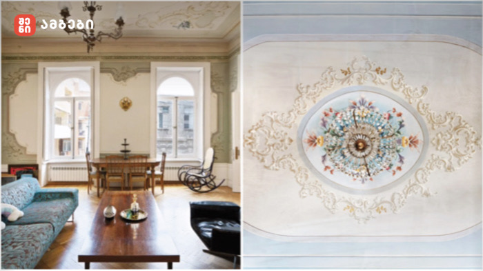 ბინა ჩემი მეუღლის ძმას, ფილოსოფოს ლევან გიგინეიშვილს ეკუთვნის. დიზაინი ჩემი გაკეთებულია. ლევანი ყველაფერში ძალიან გვენდობოდა მე და ჩემს მეუღლეს, ვისთანაც  ერთად ვიღებდი საბოლოო გადაწყვეტილებებს. თუ ბიჭები რამეში მეწინააღმდეგებოდნენ, მე მაინც ჩემი გამქონდა. ბინის ერთ-ერთი მთავარი ხიბლი ოთხკუთხედი ფორმის ულამაზესი მისაღები ოთახია, რომელსაც კედლის უნიკალური  მხატვრობა ამშვენებს. კედლის მოხატულობა, სავარაუდოდ, 50-იანი წლებით თარიღდება. როგორც ამბობენ, იმ პერიოდში თბილისში ერმიტაჟის მხატვრები იყვნენ  ჩამოსული და გარკვეულ ბინებში კედლები და ჭერი მოხატეს.